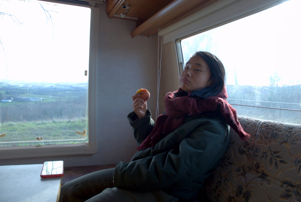 Étourdi.es, un peu épuisé.es, on souffle. On demande pardon aux arbres de les avoir malmenés. Et on déguste notre première pomme dans cette caravane qui va devenir notre nouveau chez-nous, le temps des travaux.